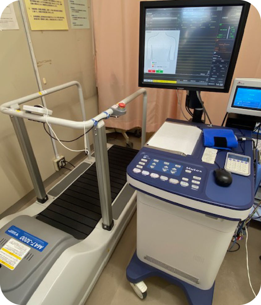 運動しながら心電図の変化、血圧の変化をみる検査です。