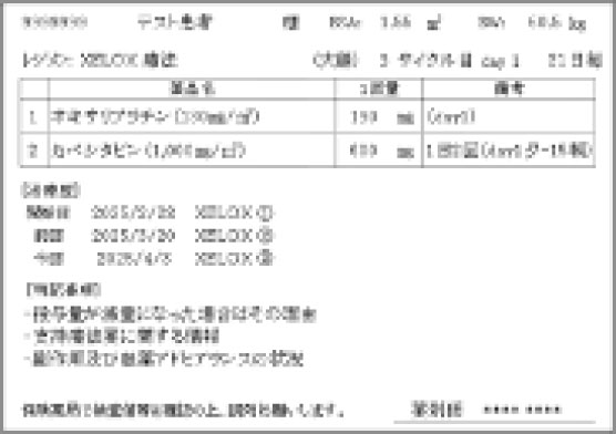 お薬手帳貼付用レジメン例